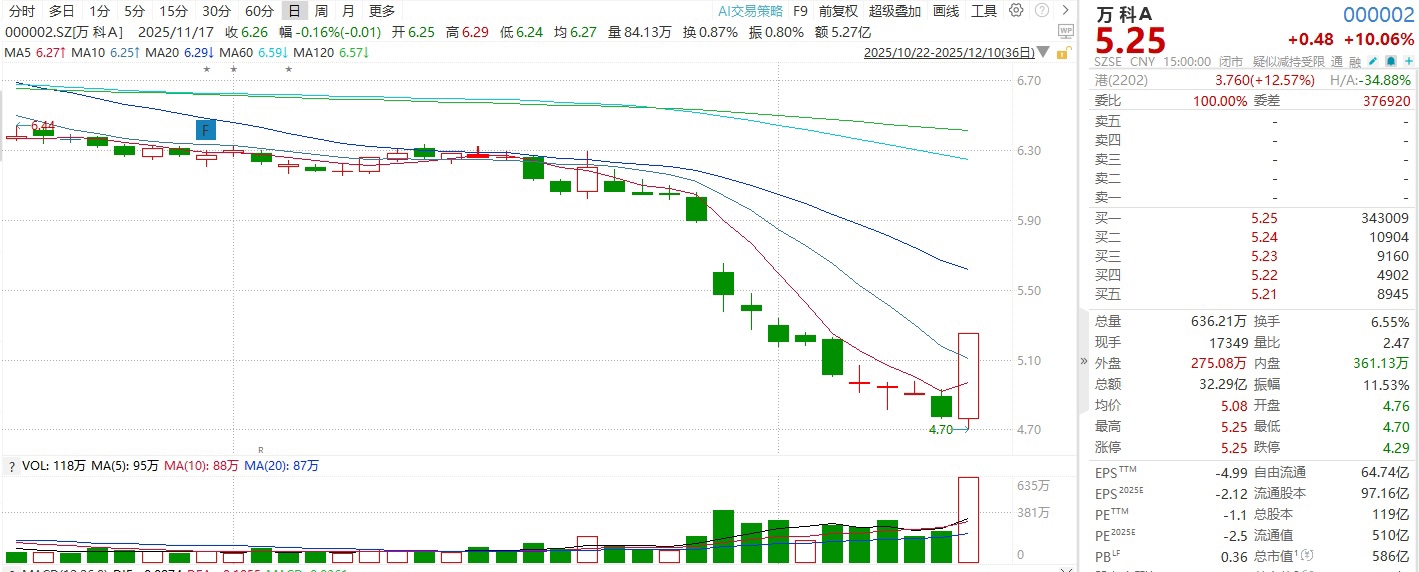 板块方面,房地产板块出现异动备受关注。二级市场上,午后万科A在资金推动下直线飙升封涨停,虽然其间有所波动,但下午2点后不久,涨停板被牢牢封死。在龙头飙升的带动下,多只地产股纷纷直线冲击涨停。