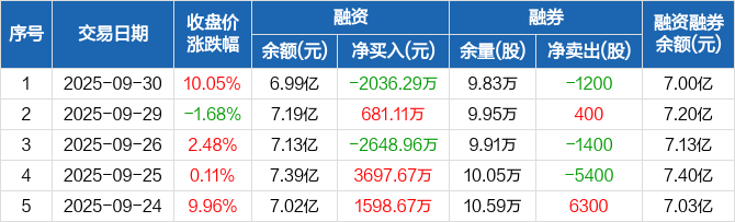 深振业A:融资净偿还2036.29万元,融资余额6.99亿元(09-30)