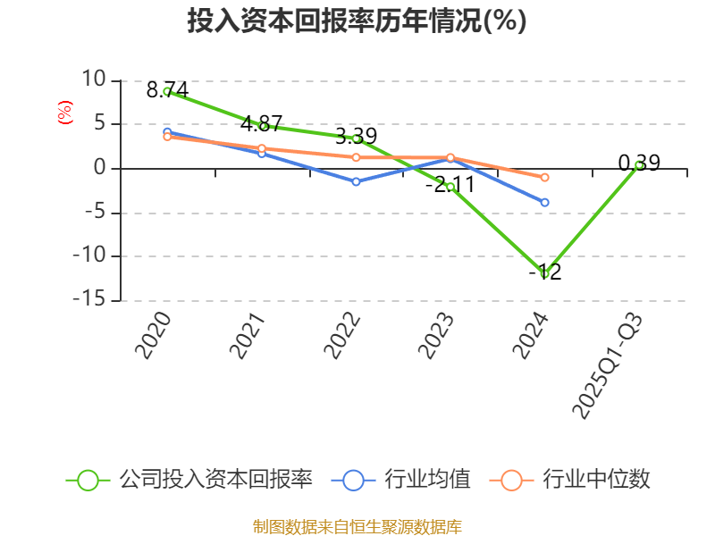 盈利能力方面, 2025年前三季度公司加权平均净资产收益率为-0.13%,同比上升7.67个百分点。公司2025年前三季度投入资本回报率为0.39%,较上年同期上升3.37个百分点。