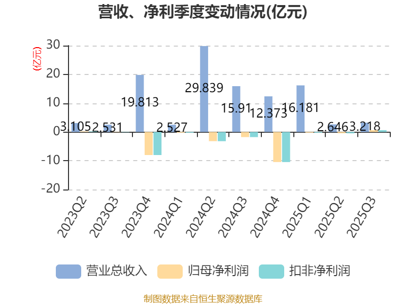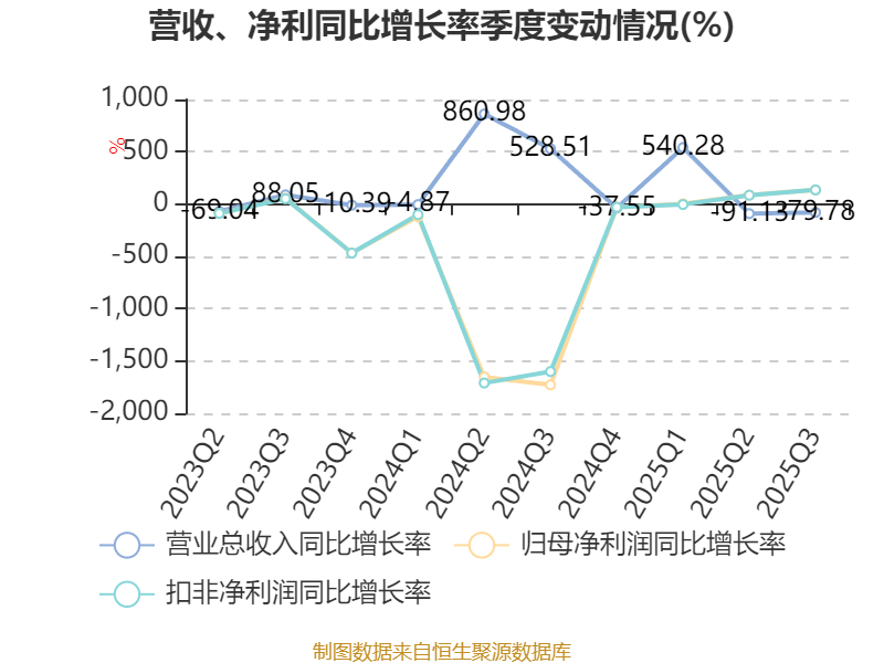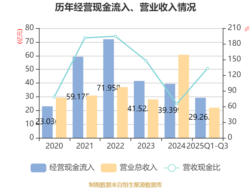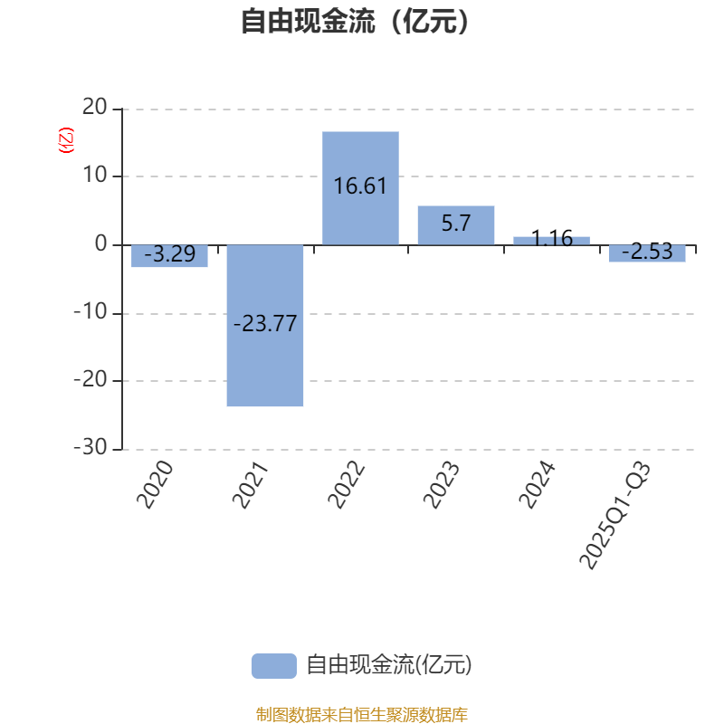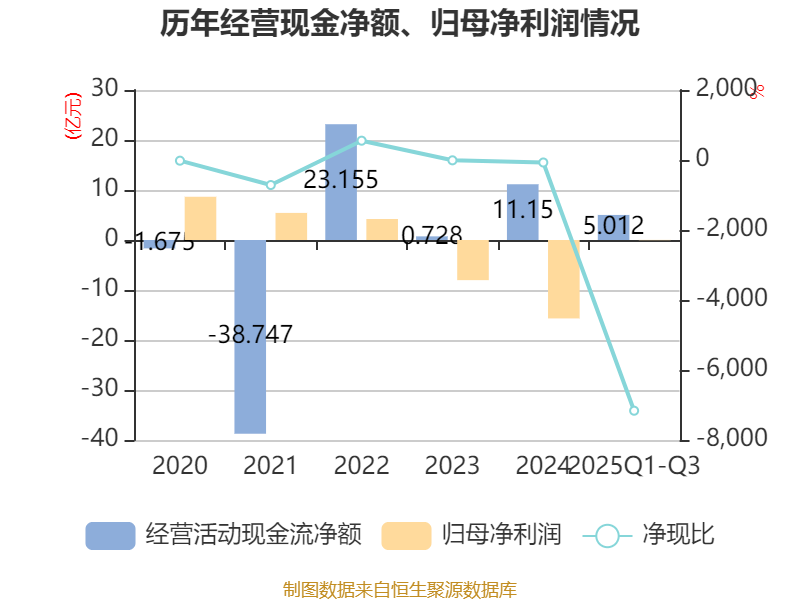 2025年前三季度,公司经营活动现金流净额为5.01亿元,同比增长363.97%;筹资活动现金流净额-5.48亿元,同比增加7.27亿元;投资活动现金流净额-3464.55万元,上年同期为-1.04亿元。