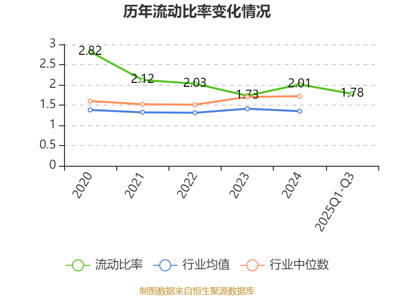 2025年前三季度,公司流动比率为1.78,速动比率为0.5。