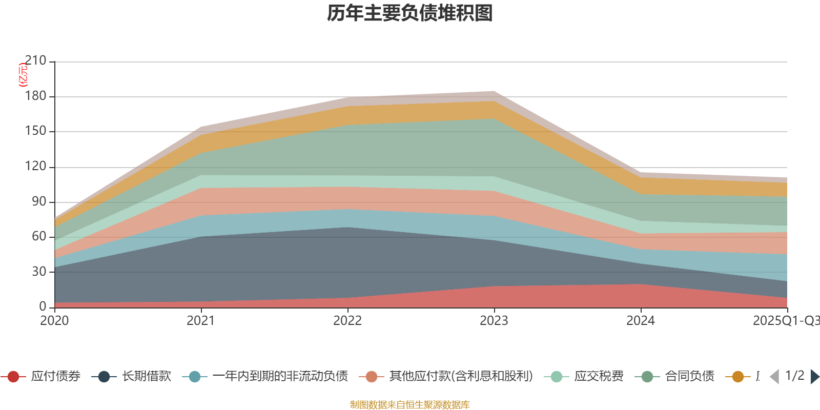 负债重大变化方面,截至2025年三季度末,公司应付债券较上年末减少58.67%,占公司总资产比重下降6.81个百分点;一年内到期的非流动负债较上年末增加89.09%,占公司总资产比重上升6.26个百分点;应交税费较上年末减少50.02%,占公司总资产比重下降3.11个百分点;其他应付款(含利息和股利)较上年末增加38.88%,占公司总资产比重上升3.05个百分点。
