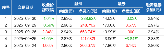 神州高铁:融资净偿还288.92万元,融资余额2.93亿元(09-30)