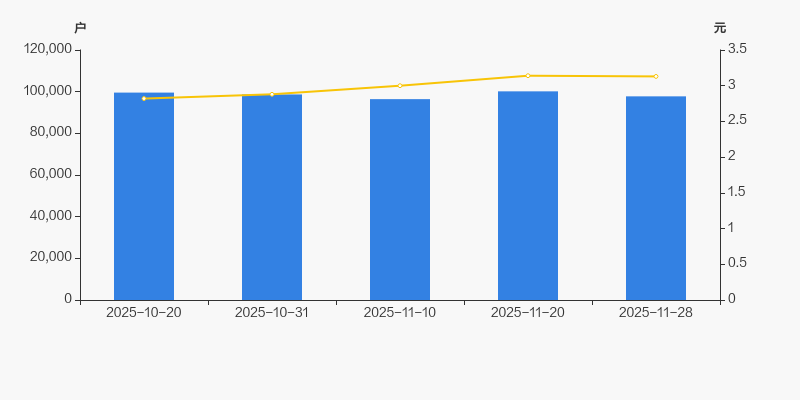 2025年10月20日至今,公司股东户数有所下降,区间跌幅为1.81%。2025年10月20日至2025年11月28日区间股价上涨10.99%。
