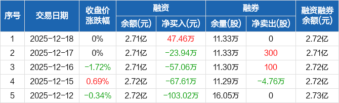 神州高铁:融资净买入47.46万元,融资余额2.71亿元(12-18)