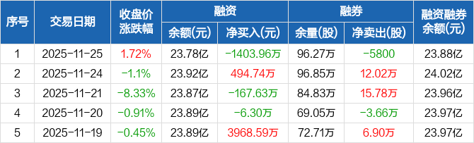 中国宝安:融资净偿还1403.96万元,融资余额23.78亿元(11-25)
