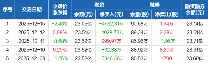 中国宝安:融资净偿还4632.31万元,融资余额23.05亿元(12-15)
