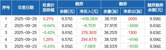 南玻A:融资净偿还439.28万元,融资余额9.57亿元(09-29)