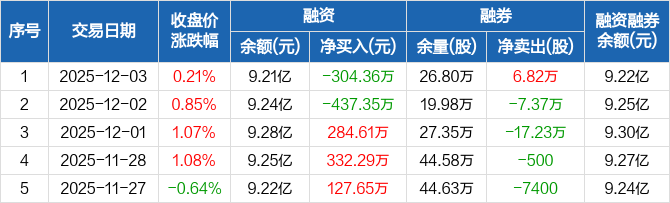 南玻A:融资净偿还304.36万元,融资余额9.21亿元(12-03)