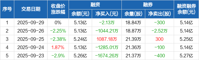 深康佳A:融资净偿还2.13万元,融资余额5.13亿元(09-29)