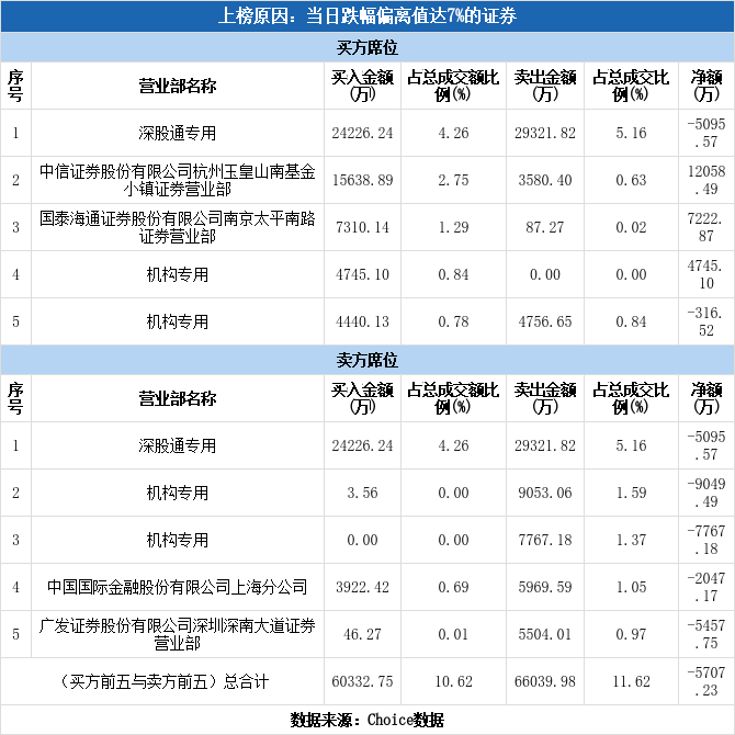 今日龙虎榜单上出现了深股通的身影,占据了买一、卖一的位置,净卖出5095.57万元,占当日成交总额的0.9%。