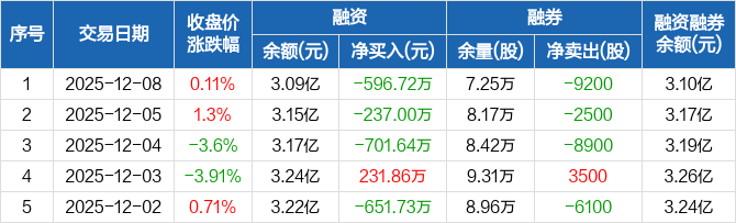 特力A:连续3日融资净偿还累计1535.36万元(12-08)
