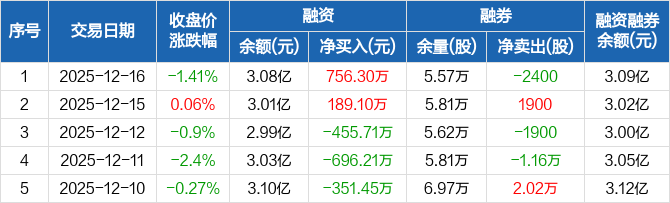 特力A:融资净买入756.3万元,融资余额3.08亿元(12-16)