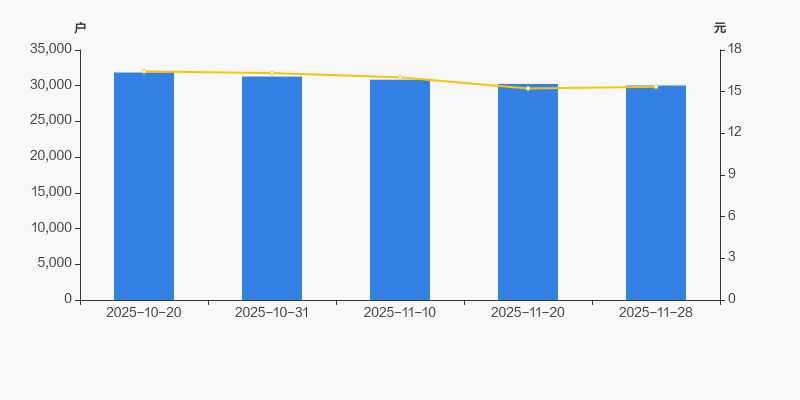 2025年10月20日至今,公司股东户数有所下降,区间跌幅为5.70%。2025年10月20日至2025年11月28日区间股价下降6.74%。