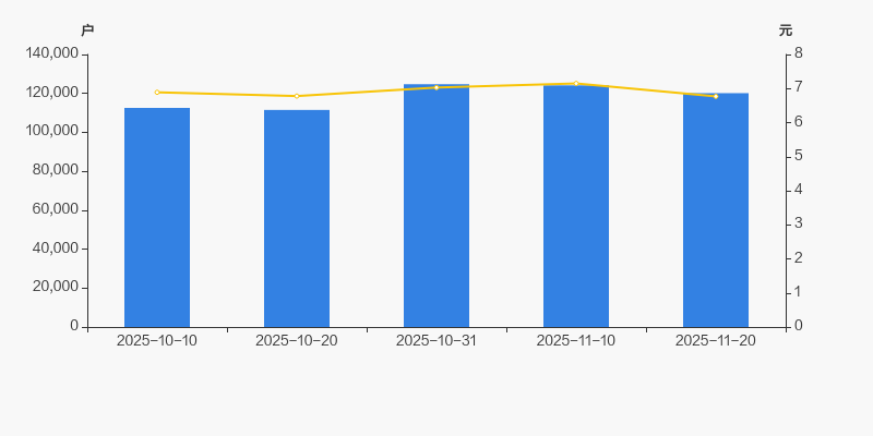 2025年10月10日至今,公司股东户数有所增长,区间涨幅为6.73%。2025年10月10日至2025年11月20日区间股价下降1.74%。