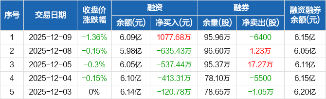 深圳能源:融资净买入1077.68万元,融资余额6.09亿元(12-09)