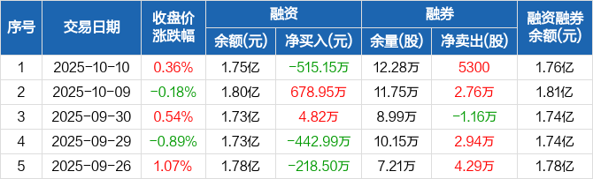 富奥股份:融资净偿还515.15万元,融资余额1.75亿元(10-10)