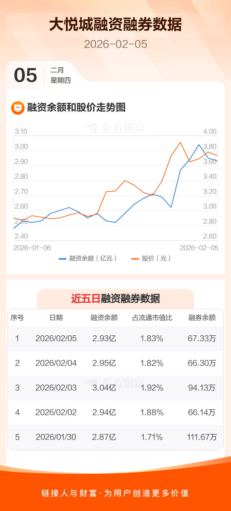 交易所最新数据显示,大悦城于2026年2月5日获融资买入2938.78万元,融资偿还3183.19万元,当日融资净偿还244.42万元。目前,该股融资余额2.93亿,占流通市值比例为1.83%。