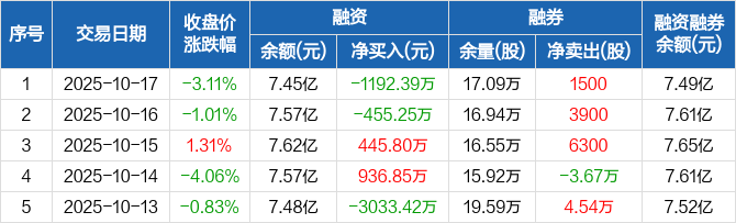 深桑达A:融资净偿还1192.39万元,融资余额7.45亿元(10-17)