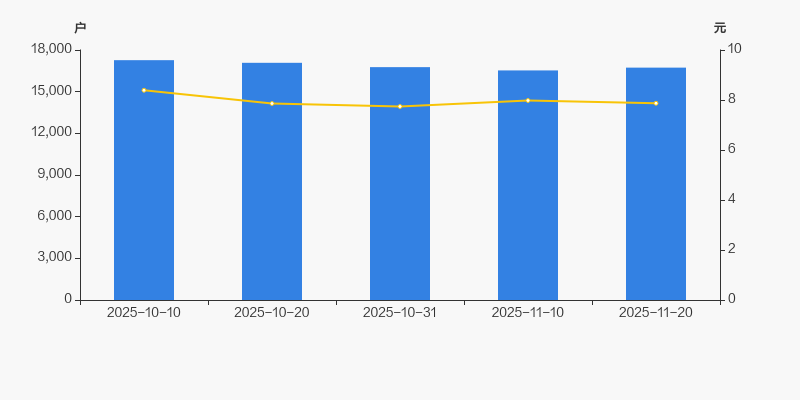 截至2025年11月20日,公司最新总股本为6.65亿股,其中流通股本为6.64亿股。户均持有流通股数量由上期的4.02万股下降至3.97万股,户均流通市值31.24万元。