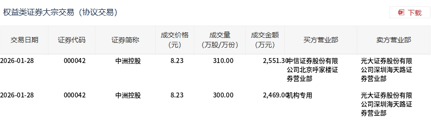 中洲控股今日大宗交易折价成交610万股,成交额5020.3万元