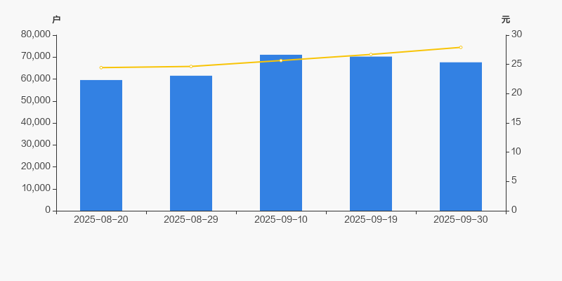 2025年8月20日至今,公司股东户数显著增长,区间涨幅为13.55%。2025年8月20日至2025年9月30日区间股价上涨14.15%。