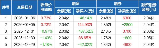 方大集团:融资净偿还46.14万元,融资余额2.04亿元(01-06)