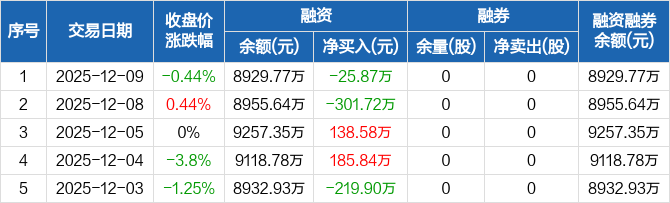 皇庭国际:融资净偿还25.87万元,融资余额8929.77万元(12-09)