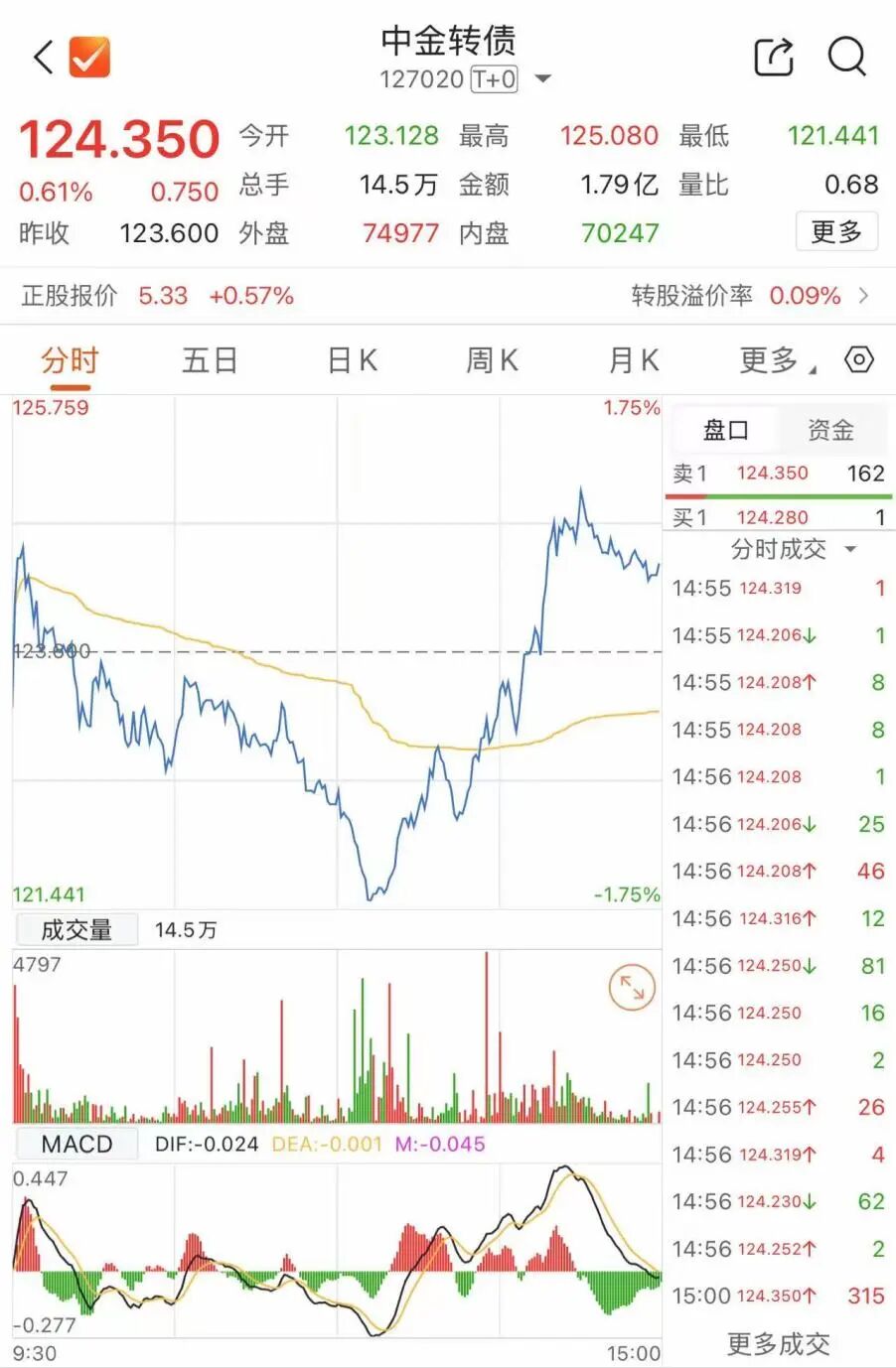 11月20日,是中金转债的最后交易日。中金转债11月19日收盘价为124.35元/张,如果投资者不及时交易或转股而被强制赎回,可能亏损超19%。此前,晨丰转债部分持有者就因未及时操作导致亏损34%以上。