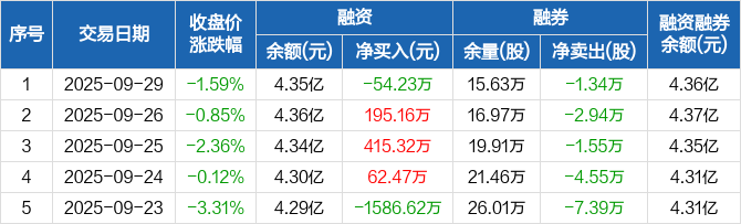 农产品:融资净偿还54.23万元,融资余额4.35亿元(09-29)