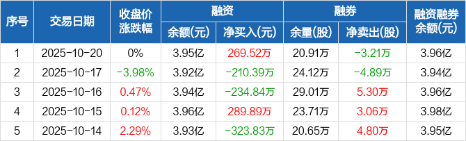 农产品:融资净买入269.52万元,融资余额3.95亿元(10-20)