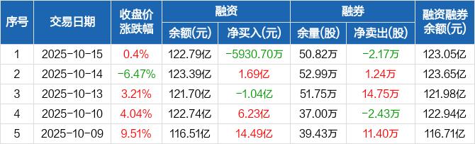 中兴通讯融资融券信息显示,2025年10月15日融资净偿还5930.7万元;融资余额122.79亿元,较前一日下降0.48%。