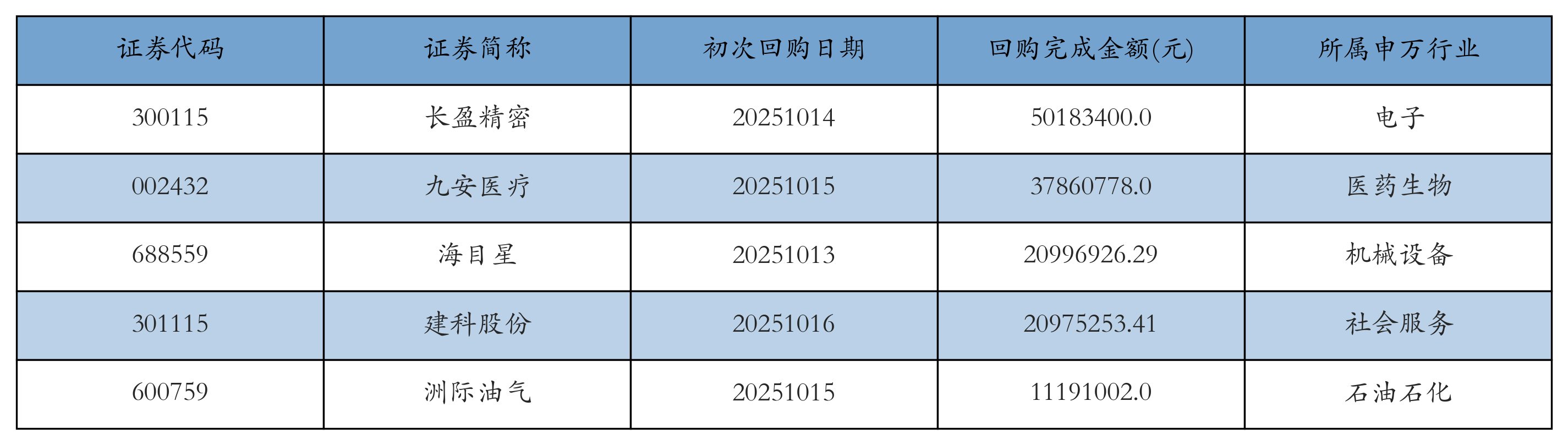 上周共有25条开始执行回购公告,其中执行金额最多的5条公告为: