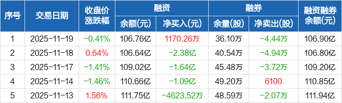中兴通讯:融资净买入1170.26万元,融资余额106.76亿元(11-19)