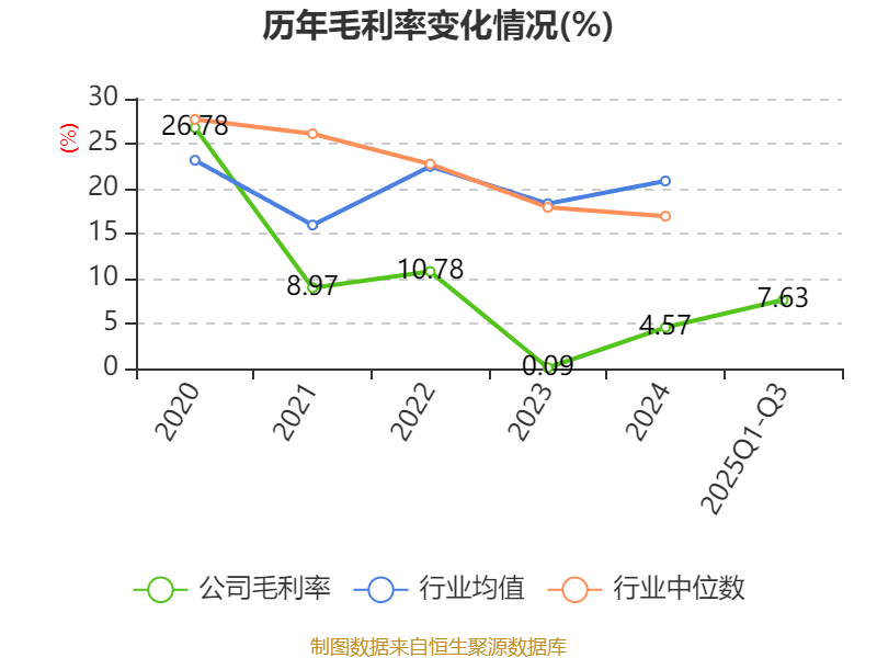 盈利能力方面, 2025年前三季度公司加权平均净资产收益率为-14.96%,同比下降4.13个百分点。公司2025年前三季度投入资本回报率为-4.39%,较上年同期下降1.06个百分点。