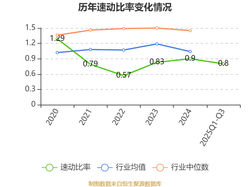 2025年前三季度,公司流动比率为0.84,速动比率为0.8。