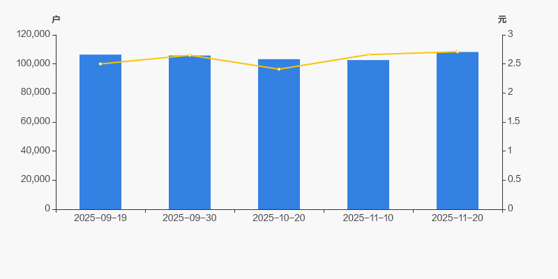 2025年9月19日至今,公司股东户数有所增长,区间涨幅为1.70%。2025年9月19日至2025年11月20日区间股价上涨8.40%。