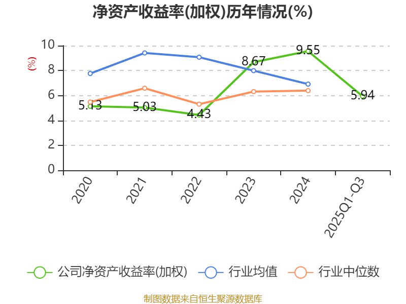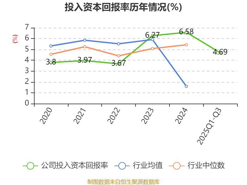 盈利能力方面, 2025年前三季度公司加权平均净资产收益率为5.94%,同比下降1.58个百分点。公司2025年前三季度投入资本回报率为4.69%,较上年同期下降0.77个百分点。