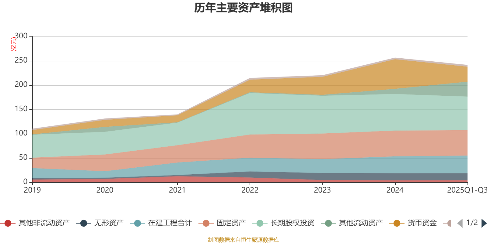 资产重大变化方面,截至2025年三季度末,公司货币资金较上年末减少49.56%,占公司总资产比重下降11.02个百分点;其他流动资产较上年末增加189.47%,占公司总资产比重上升8.6个百分点;在建工程合计较上年末增加4.8%,占公司总资产比重上升1.53个百分点;固定资产较上年末减少1.42%,占公司总资产比重上升0.97个百分点。