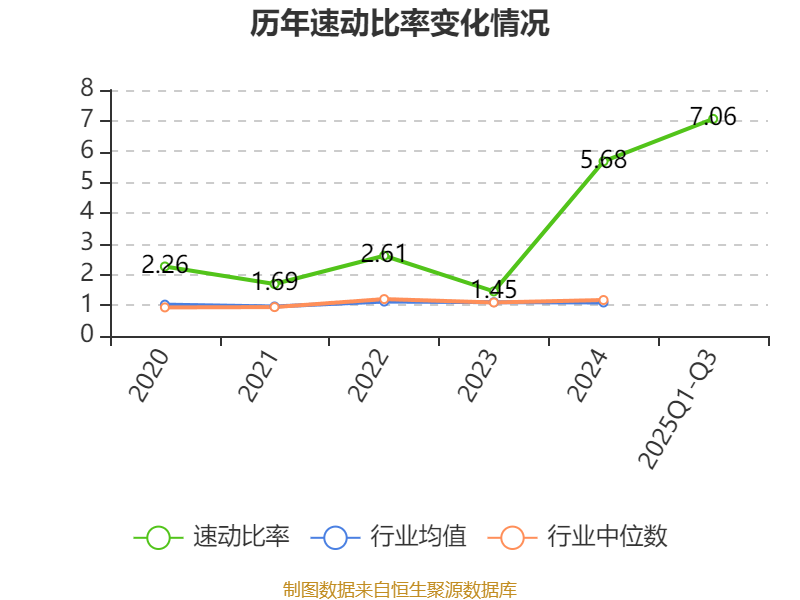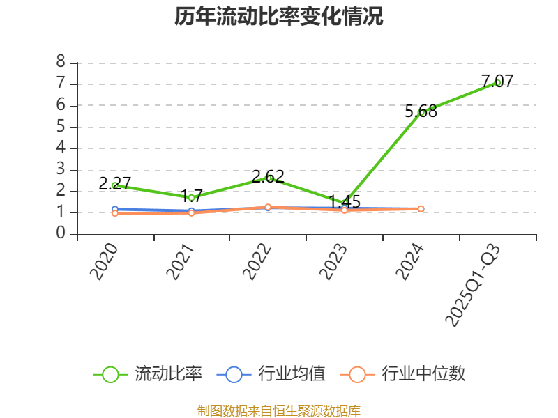 2025年前三季度,公司流动比率为7.07,速动比率为7.06。