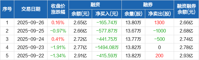 中成股份:连续7日融资净偿还累计3746.19万元(09-26)