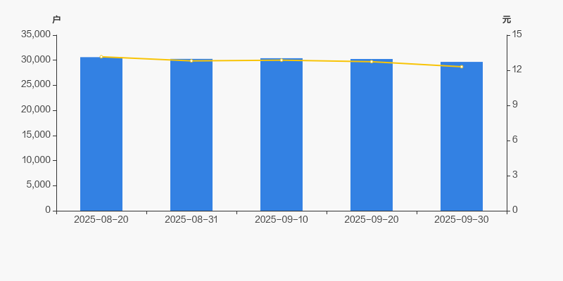 截至2025年9月30日,公司最新总股本为3.37亿股,其中流通股本为3.08亿股。户均持有流通股数量由上期的1.02万股上升至1.04万股,户均流通市值12.77万元。