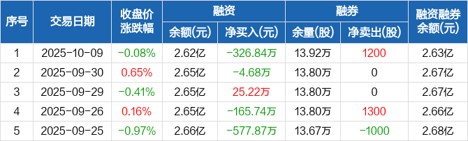 中成股份:融资净偿还326.84万元,融资余额2.62亿元(10-09)