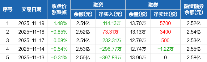 中成股份:融资净偿还114.13万元,融资余额2.51亿元(11-19)