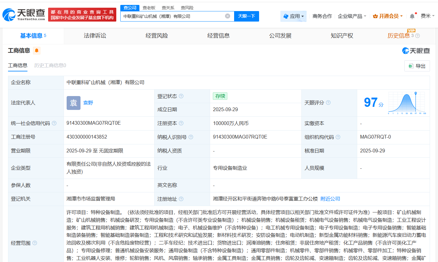 南方财经9月30日电,天眼查App显示,近日,中联重科矿山机械(湘潭)有限公司、中联重科履带起重机(湖南)有限公司成立,法定代表人分别为袁野、罗凯,注册资本分别为10亿人民币、6亿人民币,经营范围包括特种设备制造、机械设备销售、机械设备租赁等。股东信息显示,上述两家公司均由中联重科(000157)全资持股。