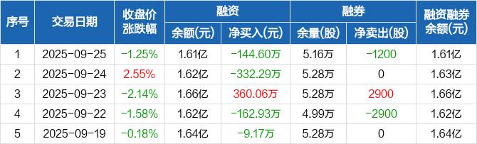 国际实业:融资净偿还144.6万元,融资余额1.61亿元(09-25)