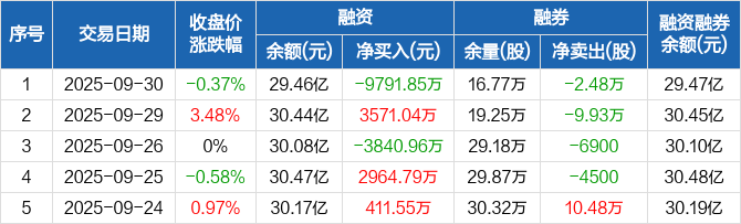 申万宏源:融资净偿还9791.85万元,创近一年新高(09-30)