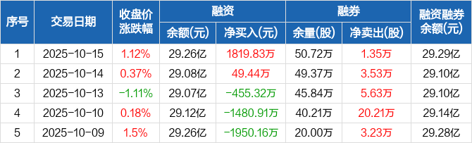 申万宏源:融资净买入1819.83万元,融资余额29.26亿元(10-15)
