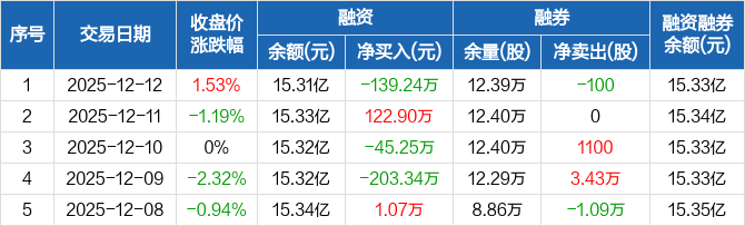 东方盛虹:融资净偿还139.24万元,融资余额15.31亿元(12-12)