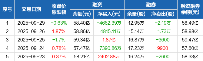 美的集团:融资净偿还4662.39万元,融资余额58.4亿元(09-29)